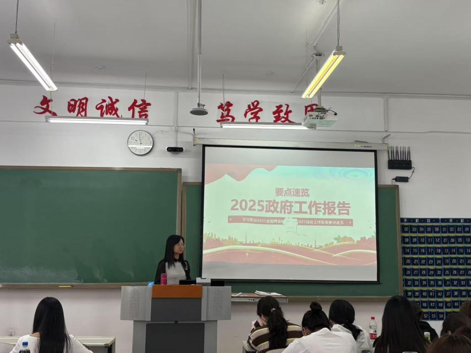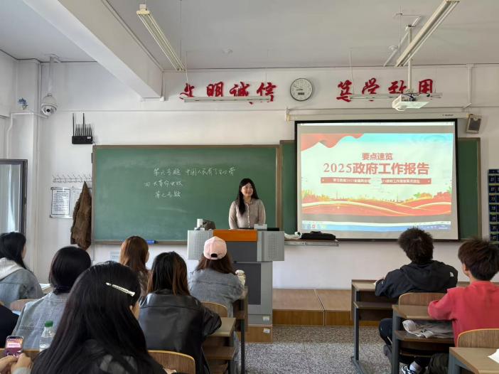 董秀玲老师在解读两会要点时,聚焦教育公平议题,结合近代以来中国人民追求教育公平的努力,从科举制废除、近代新式学堂兴起,到新中国普及九年义务教育、新时代教育公平全面推进,感悟国家在加快建设高质量教育体系、推动高水平科技自立自强、全面提高人才队伍质量方面的努力,让学生深刻体会教育公平的重要意义与国家在教育领域的不懈奋斗。