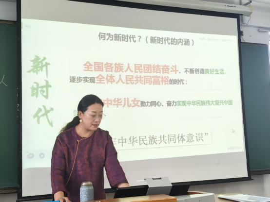 教师叶晓丽在理论讲授“新时代是全国各族人民团结奋斗、不断创造美好生活、逐步实现全体人民共同富裕的时代”时。从古代丝绸之路沿线各民族的交流交融,到近代以来各民族共同抵御外侮、争取民族独立和人民解放的伟大征程;从新中国成立后党和国家推行的民族区域自治制度,到新时代以来各民族在脱贫攻坚、乡村振兴等国家战略中携手共进的生动实践,用通俗易懂的语言和清晰的逻辑,将抽象的理论知识转化为鲜活的历史与现实画面,让学生深刻认识到,中华民族共同体意识是历史的必然、现实的需要,更是未来的方向。