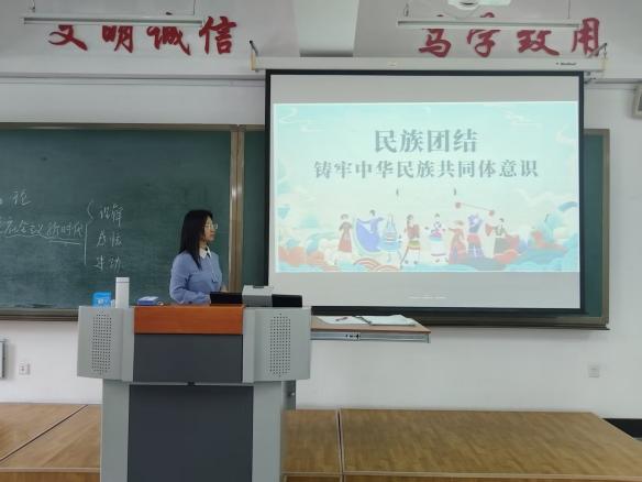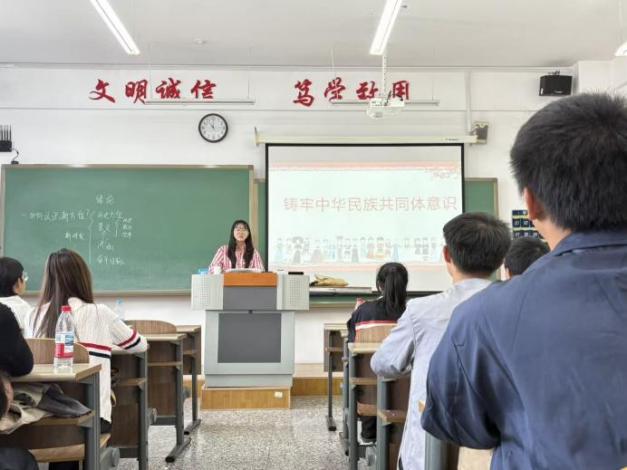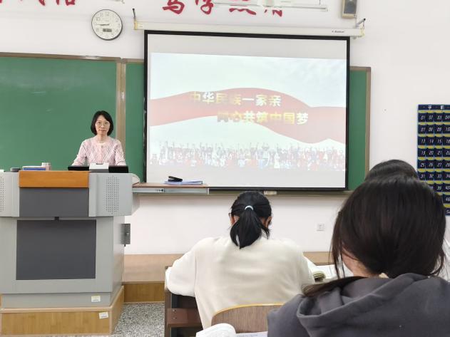 教师高杨列举“过去十年,东部省份向西部民族地区投入帮扶资金超过千亿元,帮助数百万少数民族群众脱贫摘帽,同时,西部民族地区的特色文化、优质资源也源源不断地走向东部,实现了互利共赢。”通过讲解让学生们真切感受到,各民族共同团结奋斗是实现中华民族伟大复兴的强大动力,共同繁荣发展是铸牢中华民族共同体意识的坚实基础。