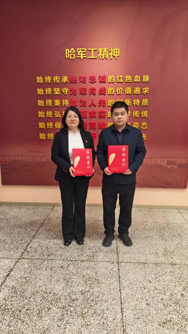 活动现场,马克思主义学院院长林爽代表学院与哈军工纪念馆宣教部负责人满胜永签订实践教学基地合作协议,并聘请纪念馆满老师为学院客座教授,标志着校馆双方在红色思政教育领域的合作正式落地,为《思想道德与法治》课程打造了长效化、专业化的实践育人平台。