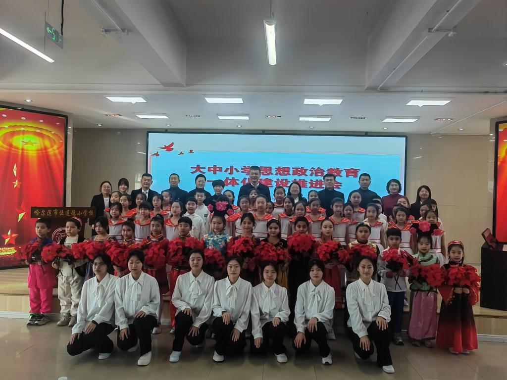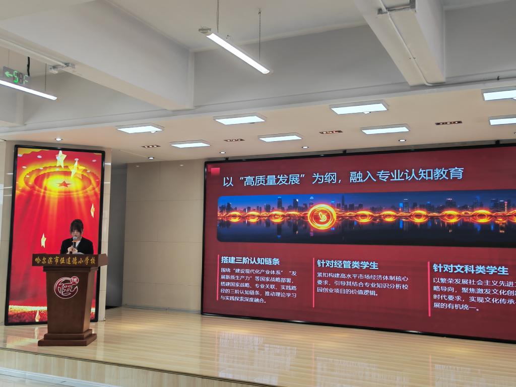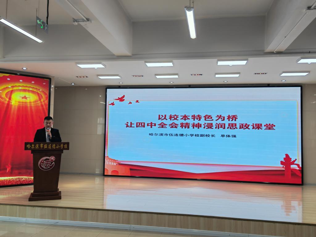 为深入学习贯彻党的二十届四中全会精神,落实习近平总书记关于学校思政课建设作出的重要指示,进一步提升思政课教学质量,推动大中小学思政课内涵式发展,12月3日上午,我校与哈尔滨市伍连德小学举行“党的二十届四中全会精神融入思政课教学暨大中小学思政课集体备课会”,我校党委副书记、工会主席黄强,道外区教育局宣传部负责人刘霞,伍连德小学党支部书记、校长高立娟及两校师生代表参加活动。