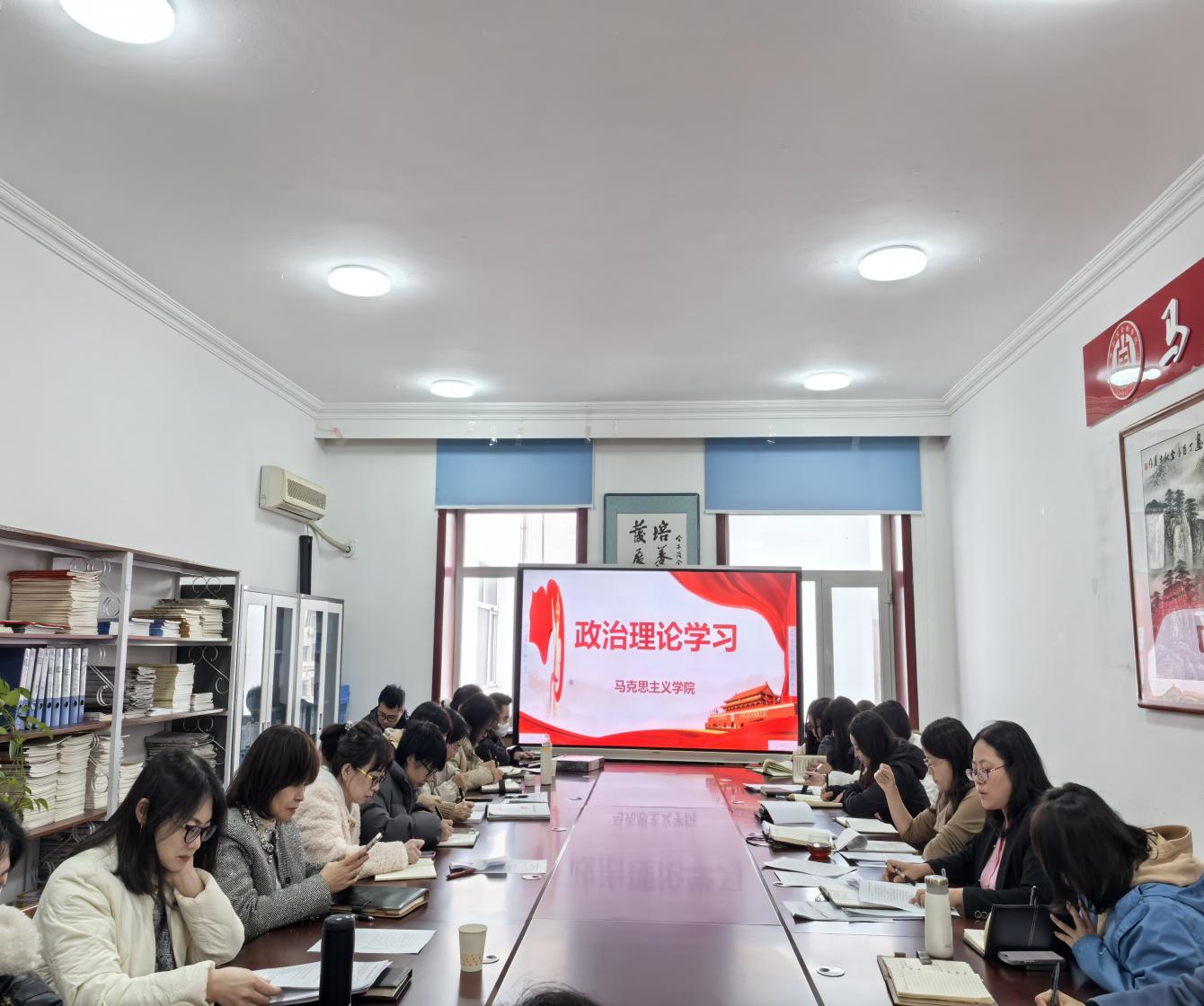 为深入贯彻落实2025年全国两会精神,引导广大师生切实把思想和行动统一到全会精神上来,不折不扣地贯彻落实党中央的各项决策部署,3月12日上午,马克思主义学院直属党支部在经管楼318会议室开展政治理论学习,学院全体教师参加学习。