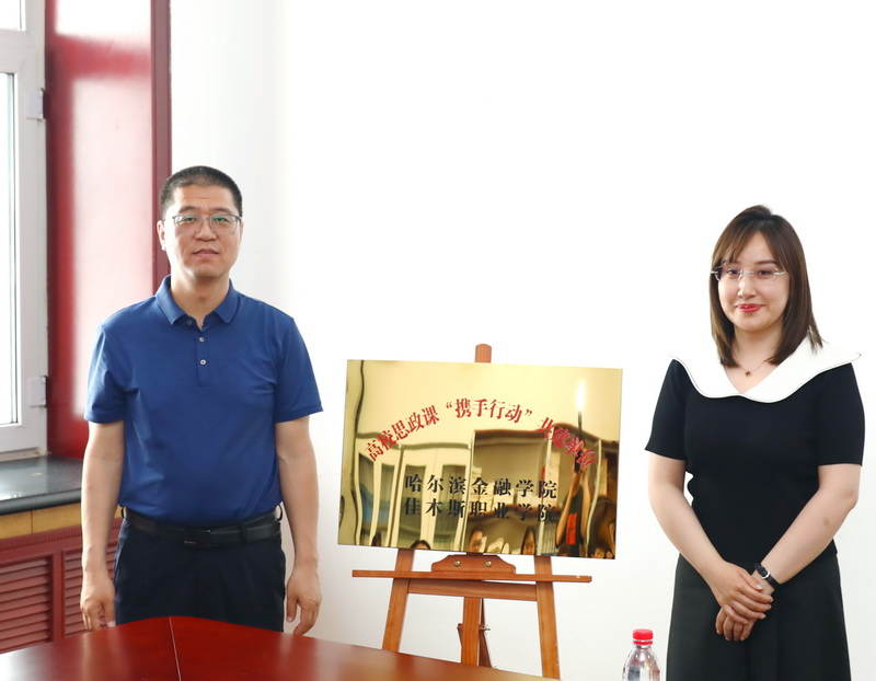 会上,双方代表签署合作协议。武建龙与佳木斯职业学院思政部主任王微共同为高校思政课“携手行动”共建单位揭牌。
