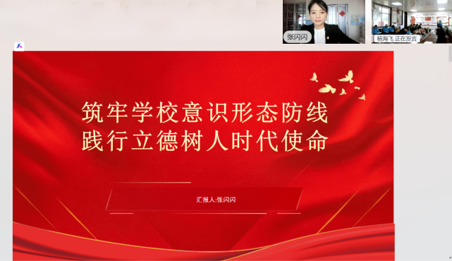 为深入推进大中小思政课一体化建设,积极贯彻落实习近平总书记关于意识形态工作和教育强国建设的重要论述,充分发挥高校在思想政治教育领域的引领作用,马克思主义学院积极推动教师参与社会服务,助力大中小思政课一体化建设。2025年8月,我院教师张闪闪于受聘为河南省三门峡市阳店一中德育与思政课专家。10月30日,张闪闪老师受邀以线上直播形式,为三门峡示范区实验中学教育集团党委及阳店一中全体党员教师开展专题党课—《筑牢意识形态防线 践行立德树人时代使命》。此次党课活动不仅彰显了学院服务基础教育的社会责任,也为推动思政课改革创新和一体化发展提供了实践范例。