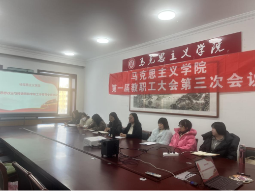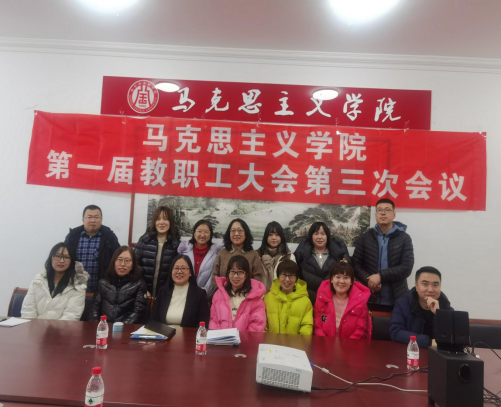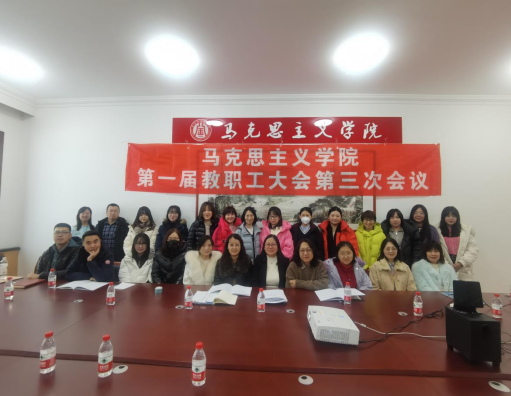 为认真贯彻落实党的二十大精神,以习近平新时代中国特色社会主义思想为指导,充分发挥教职工大会组织的作用,拓宽民主决策、科学决策渠道,动员和团结马克思主义学院全体教职工围绕中心、服务大局、同心同德、群策群力,为建设特色鲜明的地方高水平应用型财经大学的奋斗目标做出新的更大的贡献。马克思主义学院于2024年1月2日下午13:00召开第一届教职工大会第三次会议。